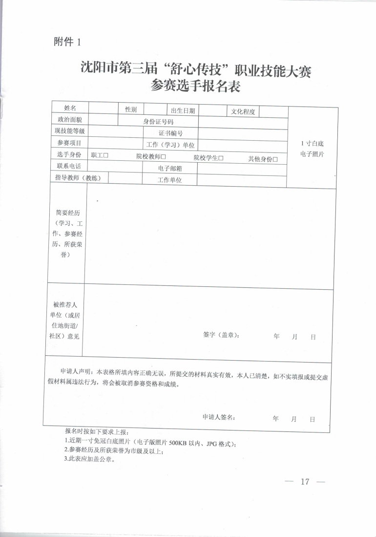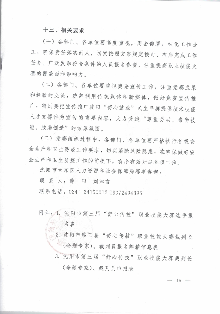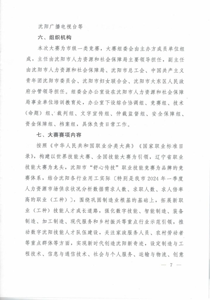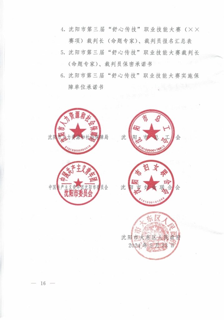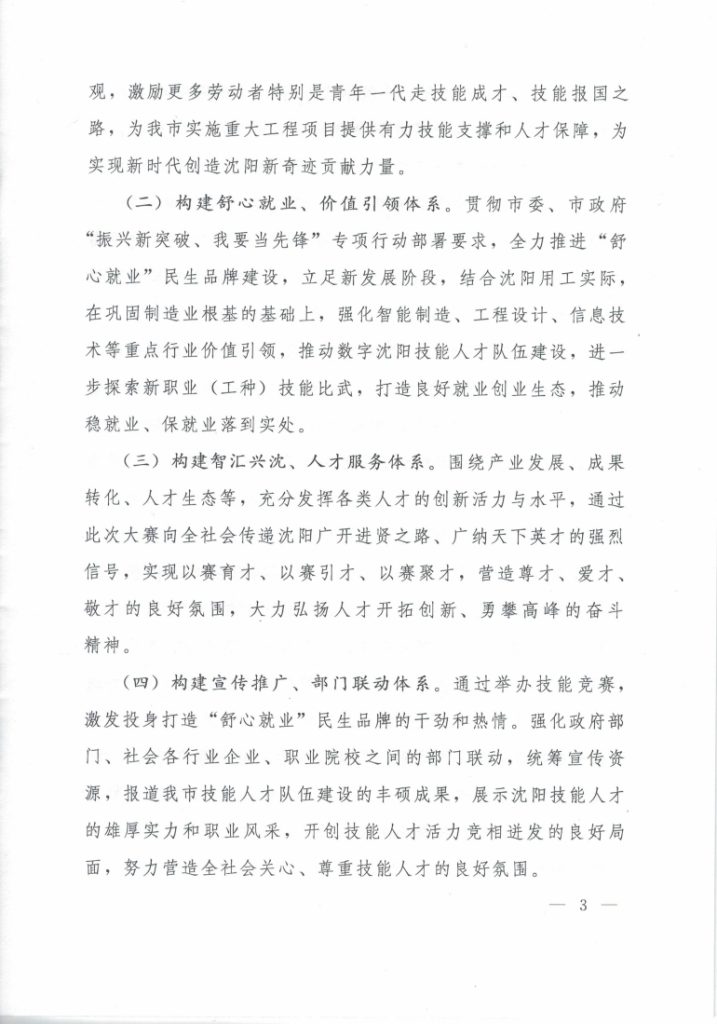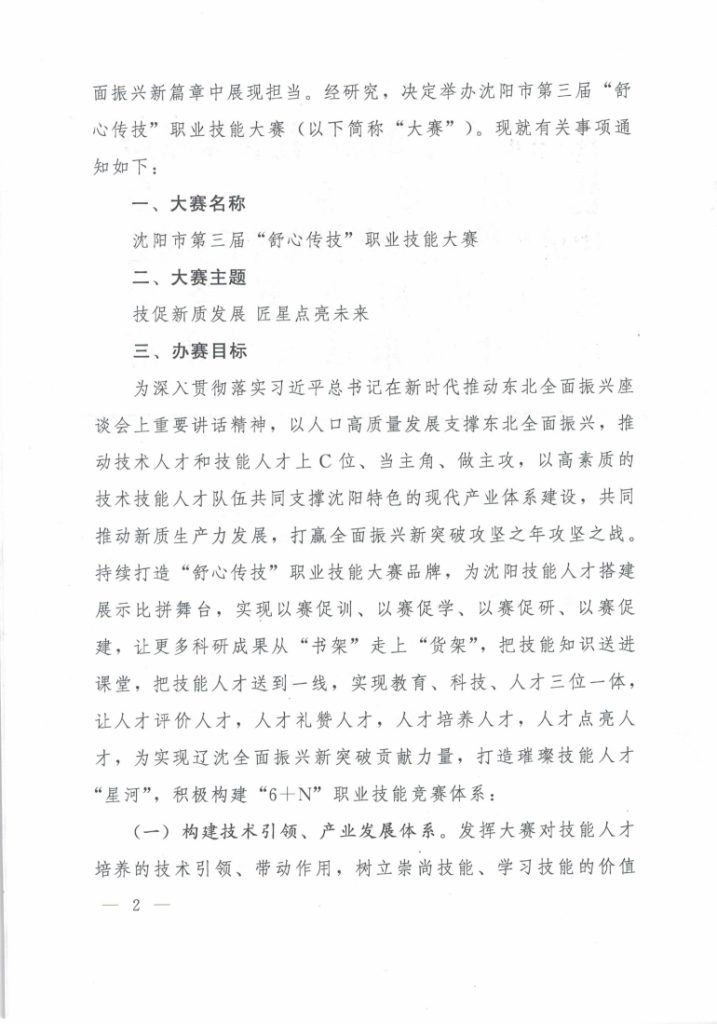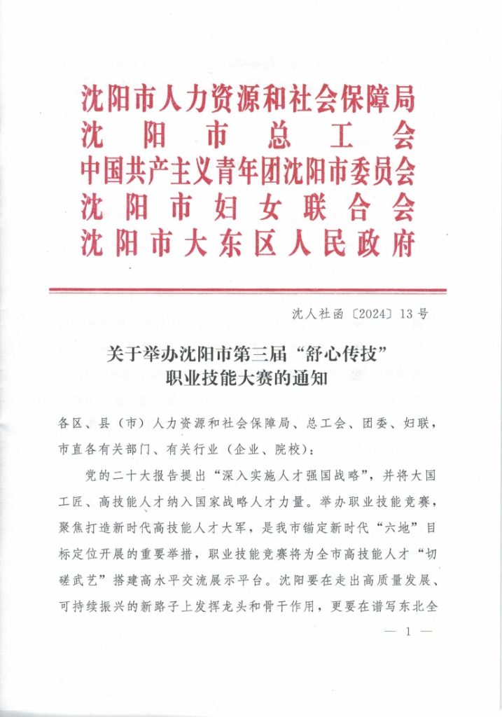 关于举办沈阳市第三届“舒心传技” 职业技能大赛的通知
