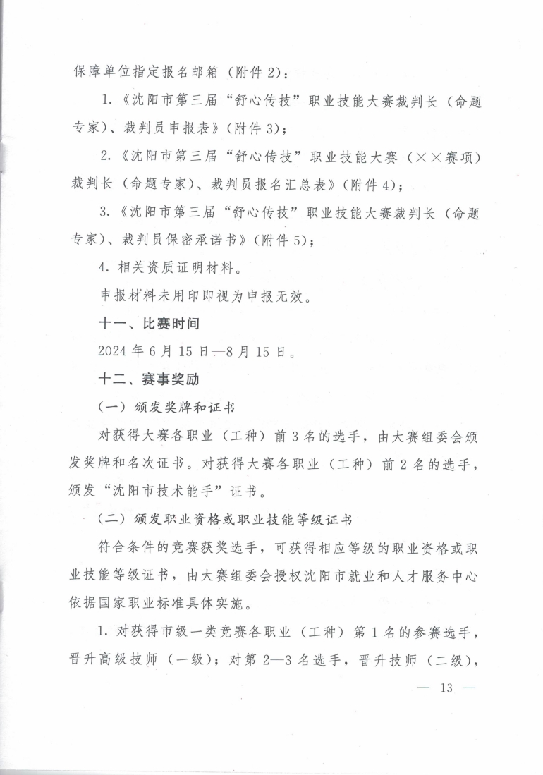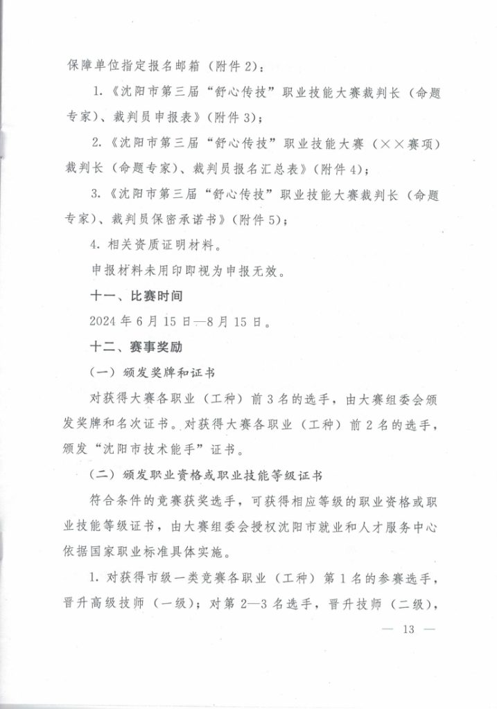 舒心传技 沈阳市第三届职业技能大赛 开始报名